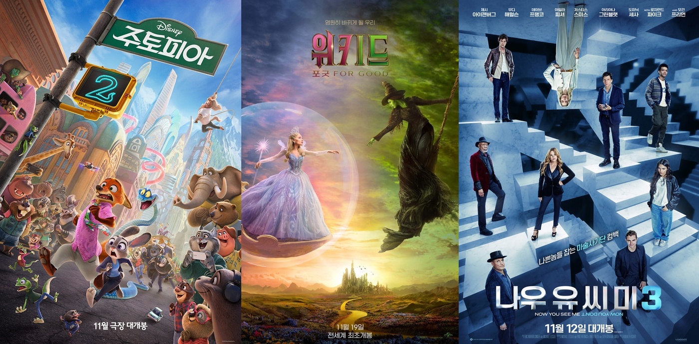 '주토피아2' '위키드 : 포 굿' '나우 유 씨 미3' 포스터 |