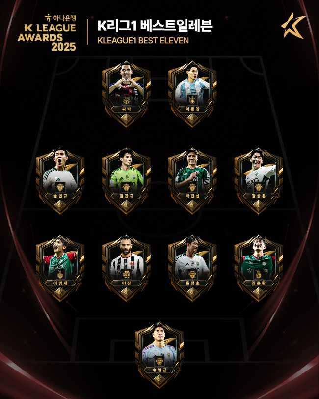한국프로축구연맹은 1일 보도자료를 통해 하나은행 K리그 2025 대상 시상식 K리그 1 베스트11을 공개했다.