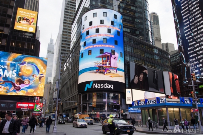 미국 뉴욕 타임스스퀘어 나스닥 마켓사이트. /사진=머니투데이DB |