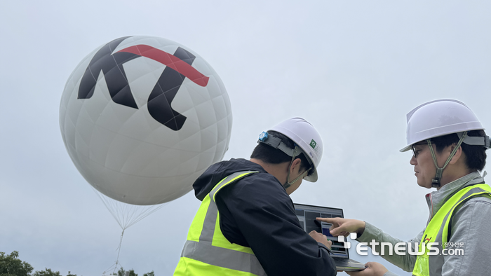 KT관계자들이 헬륨 기체 기반의 고고도 의사기지국(Semi-HAPS)을 활용한 네트워크 테스트를 진행하고 있다. |