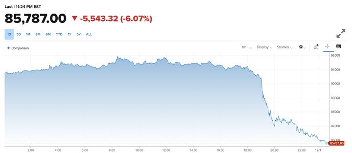 비트코인은 고점 대비 32% 하락했고, 11월 한 달간 16.7% 떨어졌다. 최근 매도 압력이 다소 완화되며 지난주 한때 9만 달러 선을 회복했지만 이날 재차 매도세가 강해져 8만5000달러선으로 밀려났다.