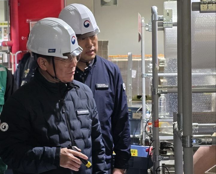 지난달 28일 김영훈 고용노동부 장관(사진 왼쪽)이 경기 고양 쿠팡풀필먼트서비스 물류센터를 불시 점검하고 있다. 고용노동부 제공 |