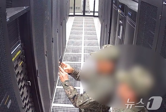 국회 행정안전위원회가 지난 3일 계엄령 선포 당시 선거관리위원회에 투입된 계엄군이 선관위 시스템 서버를 촬영하는 장면이 담긴 내부 CCTV를 6일 공개했다. (행정안전위원회 제공) 2024.12.6/뉴스1 |