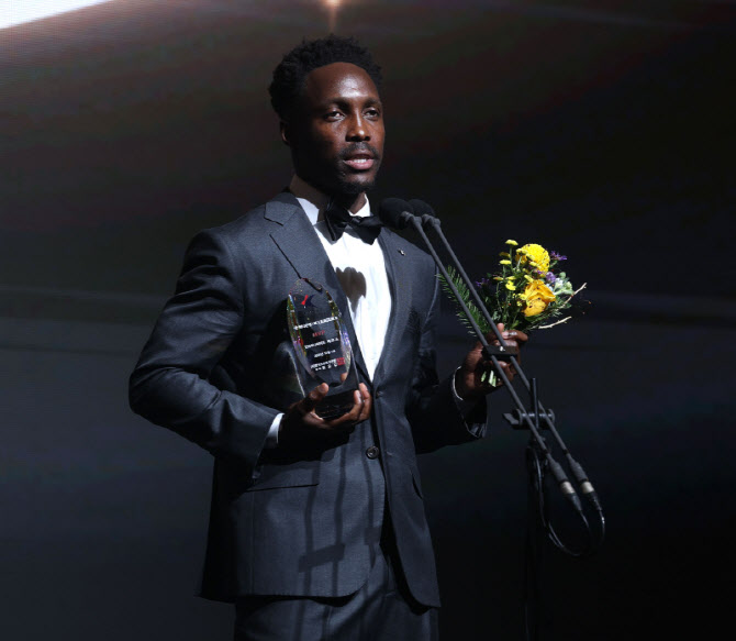 1일 서울 서대문구 스위스그랜드호텔에서 열린 K리그 2025 대상 시상식에서 K리그2 MVP를 수상한 인천 유나이티드 제르소가 수상 소감을 말하고 있다. 사진=연합뉴스 |