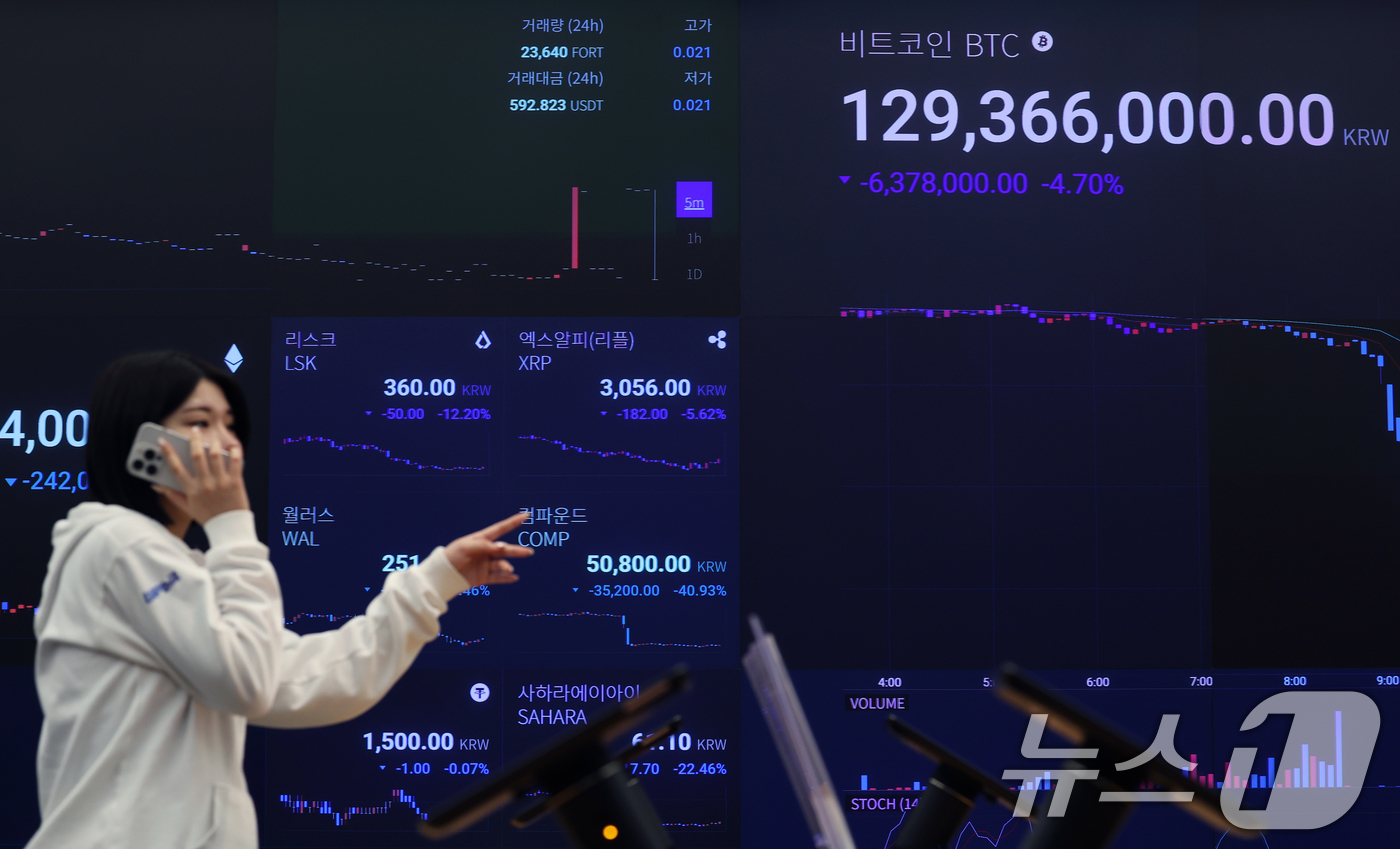 빗썸 기준 국내 비트코인 가격도 전날 같은 시간보다 4.65% 빠진 1억 2974만 9000원에 거래되고 있다.