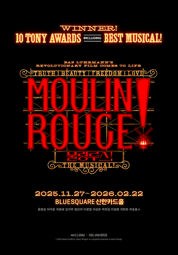 화려한 볼거리와 팝 명곡의 향연으로 연말연시 관객들의 눈과 귀를 사로잡을 뮤지컬 '물랑루즈!'는 내년 2월 22일까지 블루스퀘어 신한카드홀에서 공연된다.