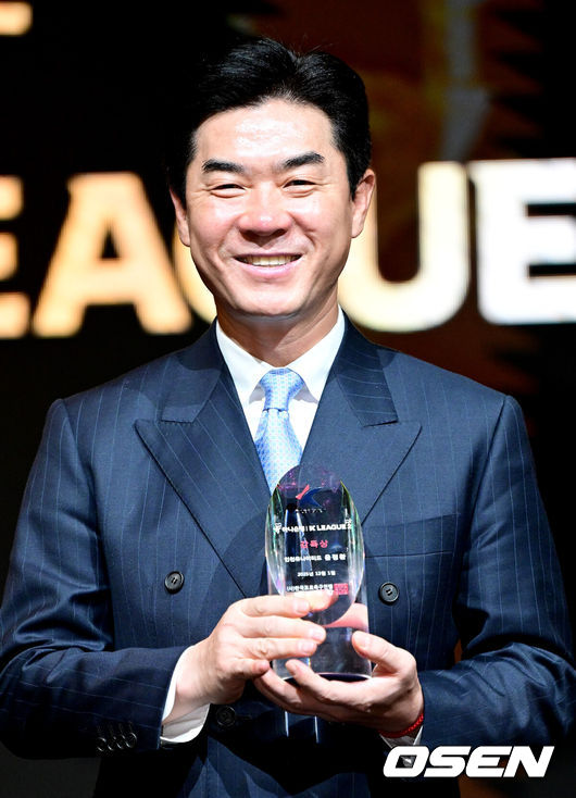 [OSEN=최규한 기자] 1일 오후 서울 홍은동 스위스 그랜드 호텔에서 ‘K리그 어워즈 2025’ 시상식이 열렸다.이날 시상식에는 최우수감독상, 최우수선수상(MVP), 영플레이어상, 베스트11 부문에 뽑힌 각 구단 수상자들과 후보들이 자리를 빛냈다.K리그2 감독상을 거머쥔 인천 윤정환 감독이 트로피와 함께 포즈를 취하고 있다. 2025.12.01 / dreamer@osen.co.kr |