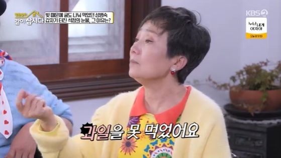 [OSEN=하수정 기자] '같이 삽시다' 성병숙이 이혼 후 생활고를 겪은 사연을 공개했다.