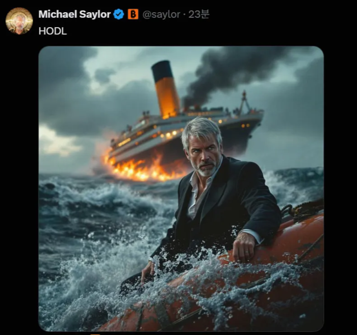 지난달 자신의 엑스에 “버텨라(HODL)”라는 짧은 메시지를 게시했던 마이클 세일러 스트래티지 CEO. [마이클 세일러 엑스] |