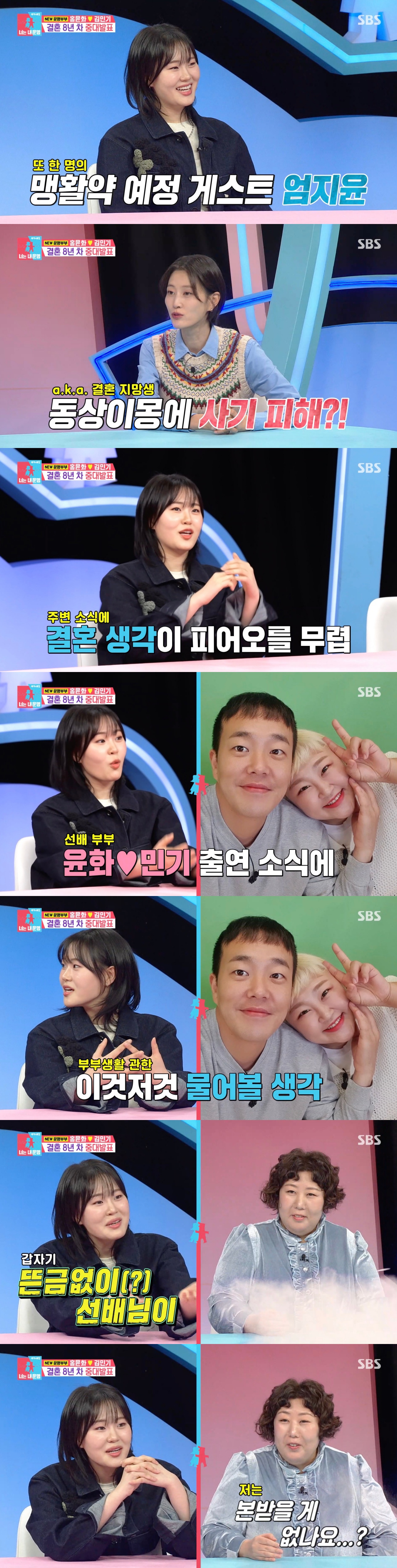 그러자 엄지윤은 "선배님은 비혼에 가깝지 않으세요?"라고 말해 폭소를 자아냈다.