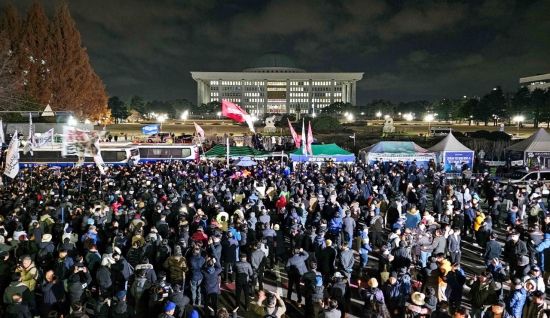 윤석열 대통령이 비상계엄을 선포한 가운데 4일 서울 여의도 국회 앞에서 시민들이 모여 비상계엄 해제를 촉구하고 있다. 강진형 기자 |