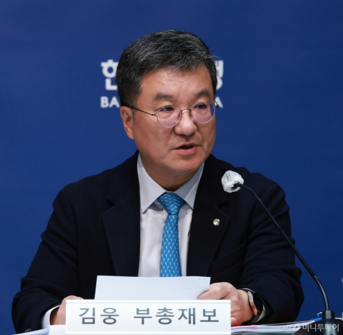 김웅 한국은행 부총재보가 27일 오후 서울 중구 한국은행에서 열린 경제전망 설명회에서 발언하고 있다. /사진제공=한국은행 |