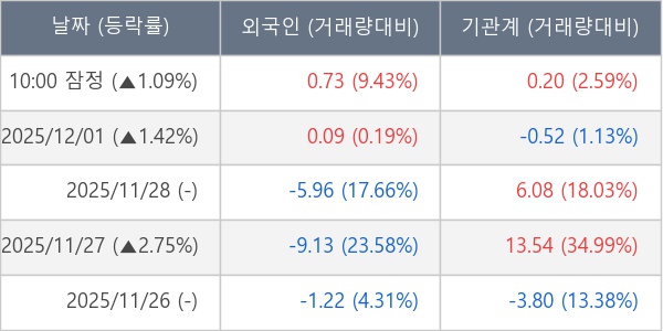 ※ 사모펀드 등 일부 기관의 순매매량은 표시되지 않음