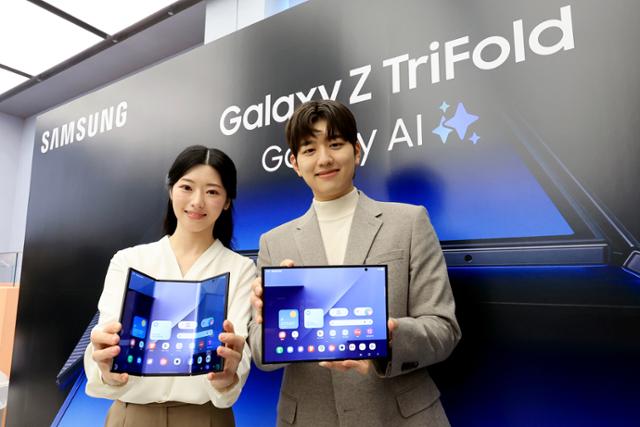 2일 서울 서초구 삼성강남에서 열린 삼성전자 갤럭시 Z 트라이폴드 출시 미디어브리핑에서 모델들이 갤럭시 Z 트라이폴드를 선보이고 있다. 뉴스1 |