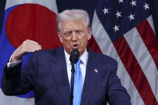 도널드 트럼프 미국 대통령이 29일 경북 경주 예술의전당에서 열린 '2025 아시아태평양경제협력체 최고경영자 서밋(APEC CEO SUMMIT)'에 참석해 정상 특별연설 하고 있다. 2025.10.29 강진형 기자 |