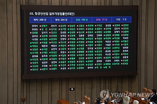 개정안은 이날 밤 본회의에서 재석 234명에 찬성 156명, 반대 77명, 기권 1명으로 가결됐다.
