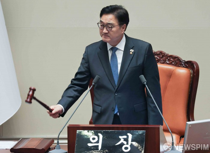 [서울=뉴스핌] 윤창빈 기자 = 우원식 국회의장이 2일 서울 여의도 국회에서 본회의에서 의사봉을 두드리고 있다. 2025.12.02 pangbin@newspim.com |