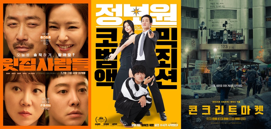 12월 3일에 똘똘 뭉친 한국 영화 세 편이 연말 국내 극장가 공습에 나선 할리우드 대작들 사이에서 알찬 흥행 성적을 거둘 수 있을지 주목된다.