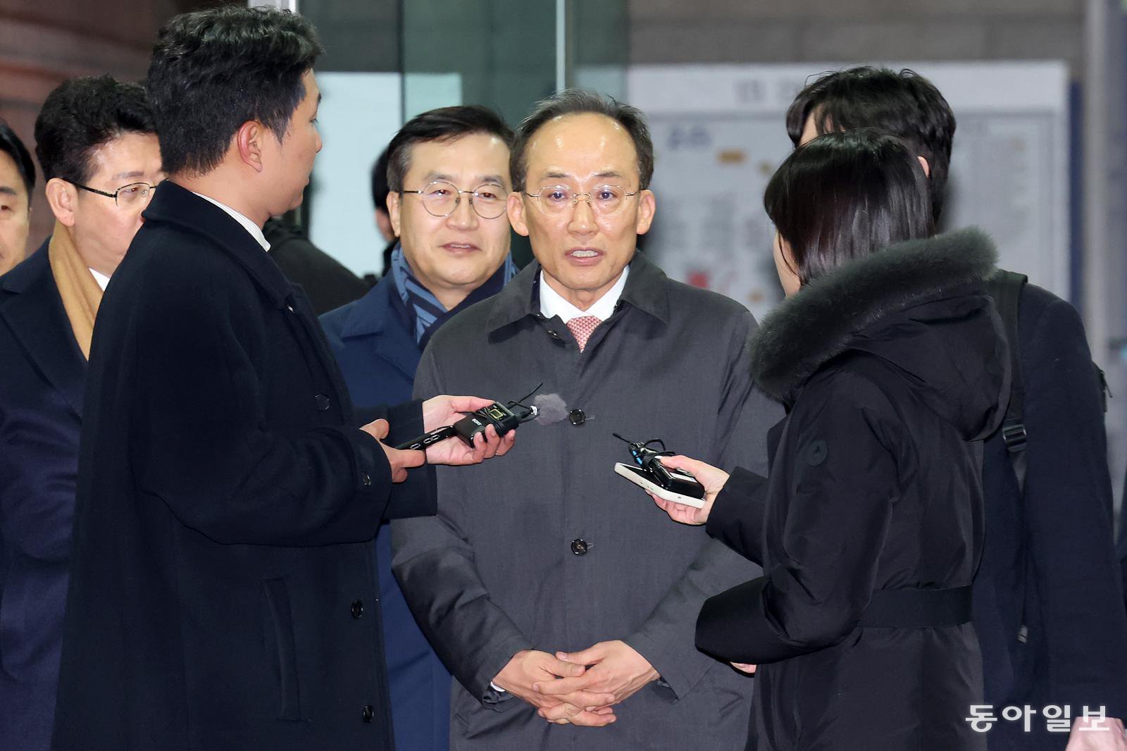 국회의 12·3 비상계엄 해제 의결 방해 의혹을 받는 추경호 전 국민의힘 원내대표가 3일 오전 서울 서초구 서울중앙지방법원에서 열린 영장실질심사를 마친 뒤 구치소에서 대기하기 위해 나서고 있다. 이한결 기자 always@donga.com |