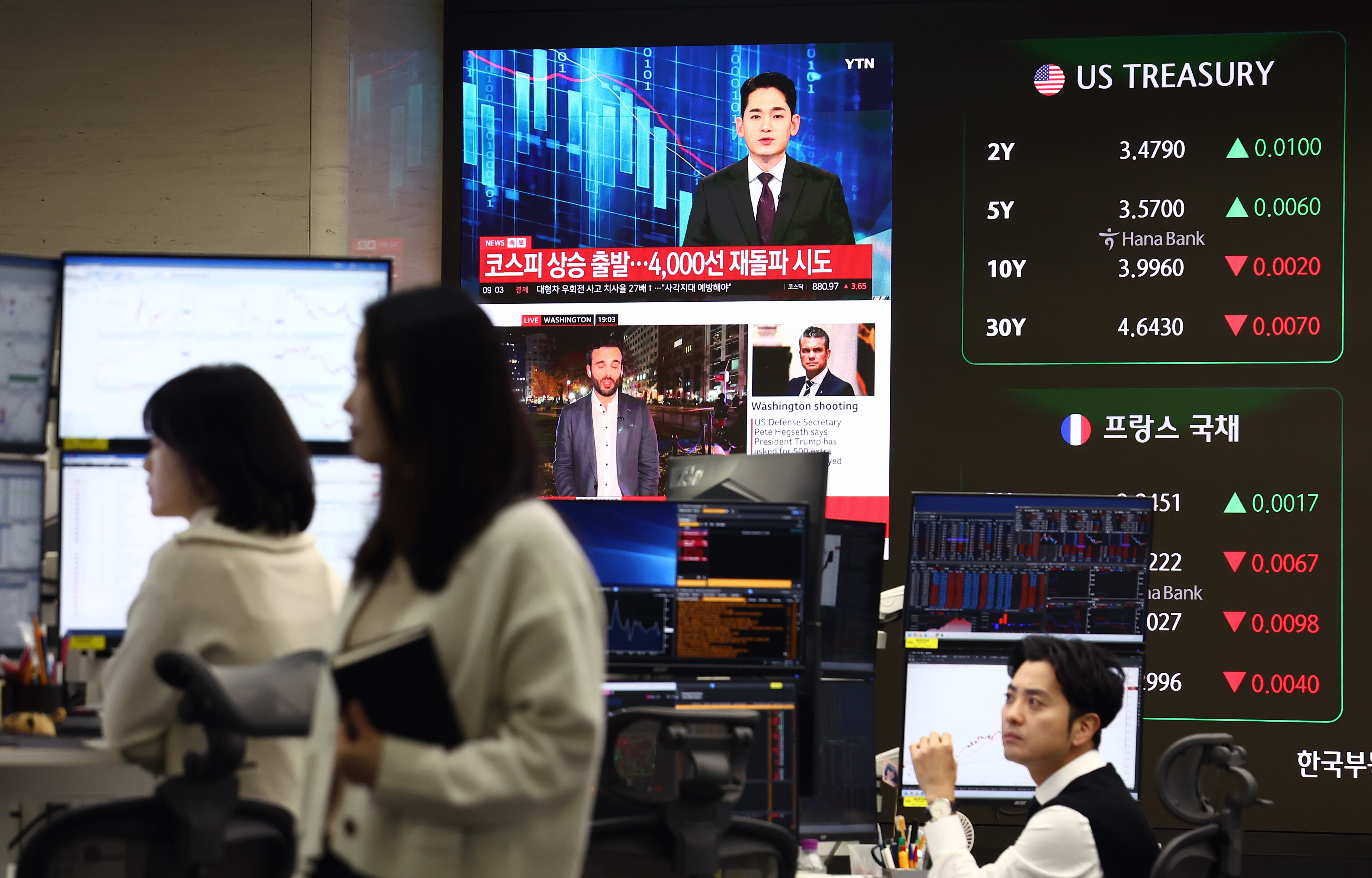 이날 오전 9시 12분 기준 코스피 지수는 전 거래일보다 10.39포인트(0.26%) 오른 4005.32를 기록했다. 코스피 지수는 전 거래일 대비 0.38% 상승한 4010.26에 거래를 시작했다.