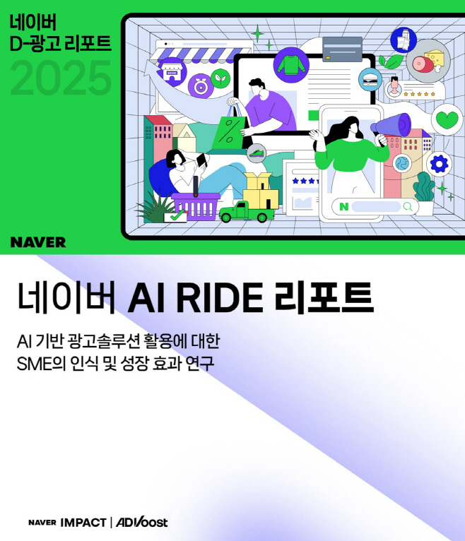 D-광고 리포트는 고려대학교 이건웅 교수 연구팀의 '네이버 광고를 통한 스마트스토어 판매 성과 분석'과 성균관대학교 김지영 교수 연구팀이 진행한 '직접 운영 광고주 컨설팅이 광고 성과에 미치는 영향 분석' 등 네이버 주요 광고 설루션 효과 중심 연구를 담았다. AI RIDE 리포트는 성균관대학교 채인영 교수 연구팀의 'AI 기반 광고 솔루션 활용에 대한 SME의 인식 및 성장 효과 연구'를 토대로 네이버의 AI 광고 설루션 '애드부스트 쇼핑(ADVoost Shopping)'의 성과를 검증한 내용이 담겼다.