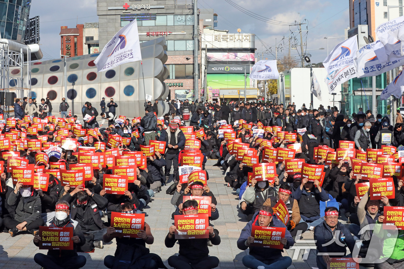 광주송정역 앞에서 열린 공공운수노조 철도노조 파업 출정식의 모습. 뉴스1 DB |