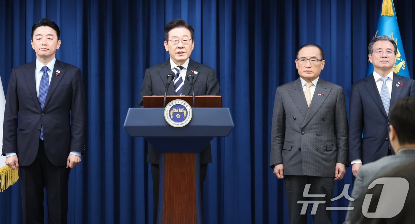 (서울=뉴스1) 허경 기자 = 이재명 대통령이 3일 서울 용산 대통령실 청사에서 ‘빛의 혁명 1주년, 대통령 대국민 특별성명’을 발표하고 있다. 2025.12.3/뉴스1