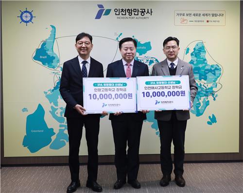 (인천=연합뉴스) 최은지 기자 = 인천항만공사(IPA)는 해양 인재 육성을 위해 인항고등학교와 인천해사고등학교에 각각 1천만원의 장학금을 전달했다고 3일 밝혔다.