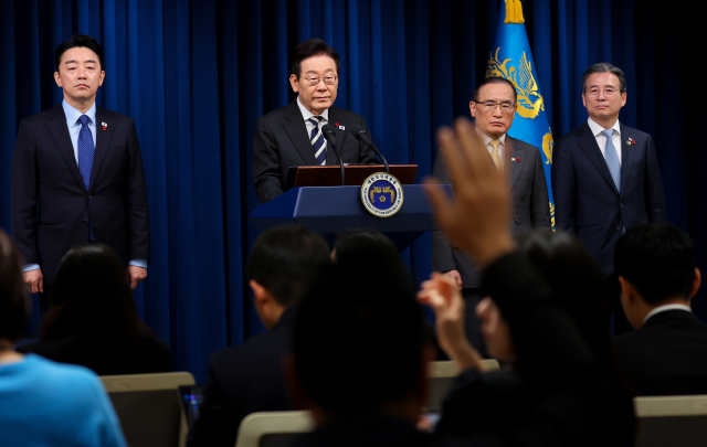 ▲이재명 대통령이 12.3 비상계엄 사태 1주년인 3일 용산 대통령실에서 '빛의 혁명 1주년 대국민 특별성명'을 발표한 뒤 취재진의 질문을 받고 있다. ⓒ연합뉴스 |