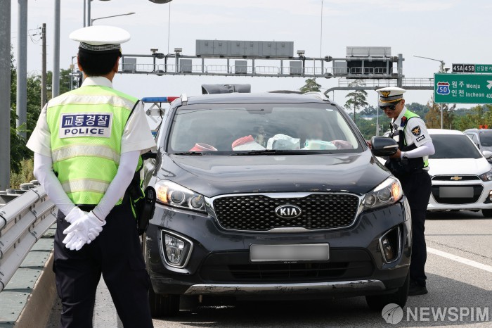 지난 7월 31일 경기 용인시 경부고속도로에서 서울경찰청·경기남부경찰청 합동 단속대가 버스전용차로 위반 합동단속을 실시하고 있다. [사진=뉴스핌 DB] |