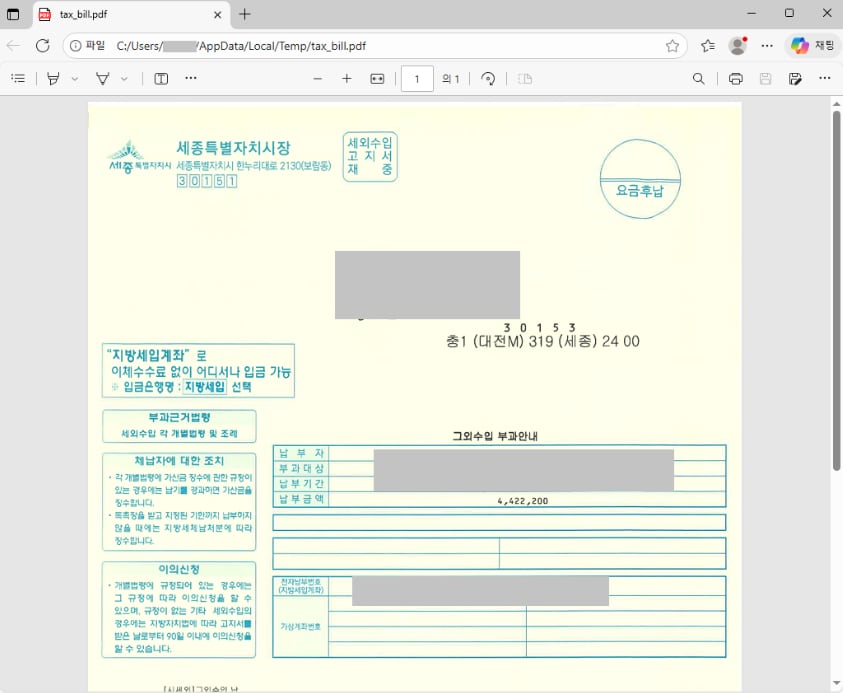 국세 고지서 위장 파일. /이스트시큐리티 |