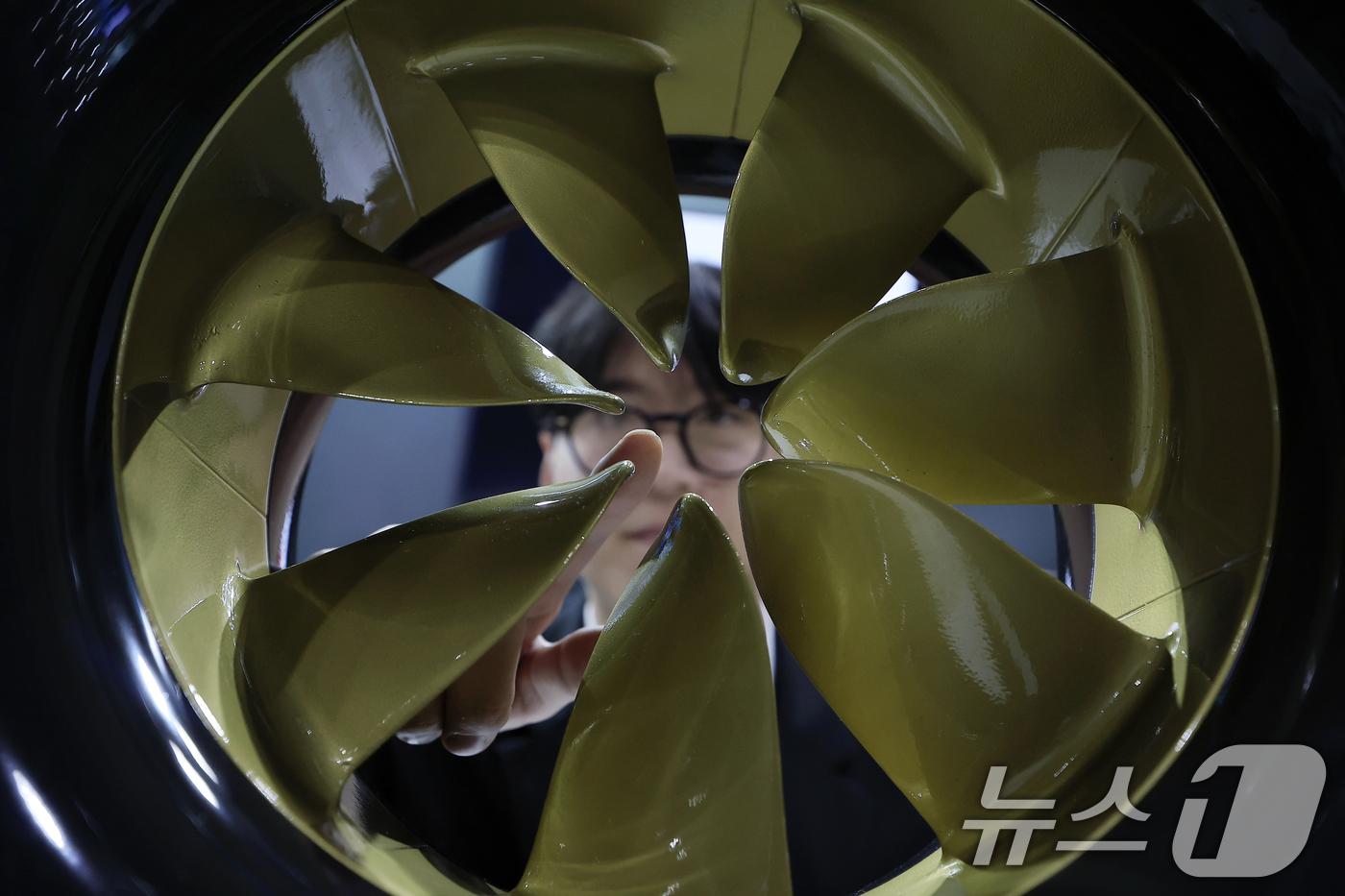 (서울=뉴스1) 박정호 기자 = 3일 서울 강남구 삼성동 코엑스에서 열린 2025 코리아 테크 페스티벌 (주)KTE 부스에서 관계자가 선박의 다양한 전력원에 적용할 수 있는 친환경 전기 추진기인 림구동 추진기를 소개하고 있다. 2025.12.3/뉴스1