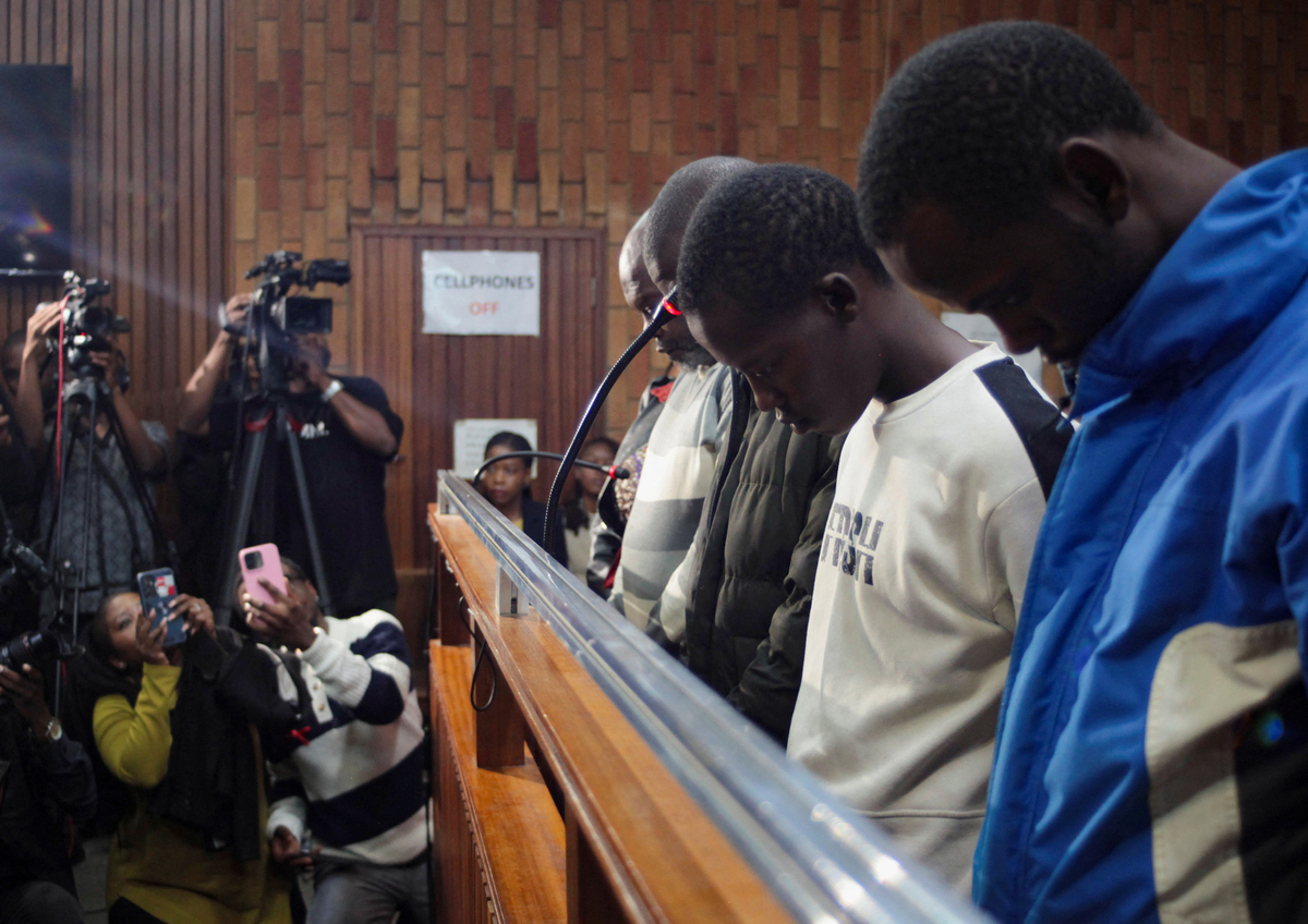 남아프리카공화국의 유명 방송인 논쿨루레코 만툴라가 1일(현지시간) 요하네스버그 켐턴파크 치안법원에서 열린 심문 절차에 출석했다. 만툴라는 4명의 남성을 유인해 우크라이나 전쟁에 투입할 러시아 용병으로 보낸 혐의를 받는다. 출국 직전 공항 탑승구에서 붙잡힌 남성 4명도 이날 법정에 함께 섰다. 로이터연합뉴스 |