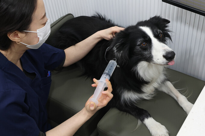 지난 1일 오후 서울 종로구 한 동물병원에서 ‘인도적 반려동물 진료 훈련’을 받은 보더콜리 ‘바벨’이 수액 주사를 맞고 있다. 최현수 기자 emd@hani.co.kr |