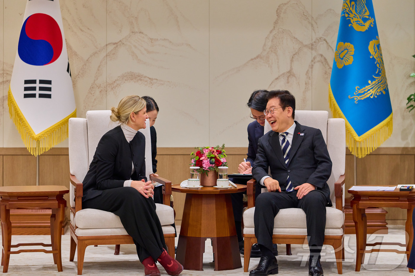(서울=뉴스1) 이재명 기자 = 이재명 대통령이 3일 서울 용산 대통령실 청사에서 커스티 코번트리 국제올림픽위원회(IOC) 위원장을 접견하고 있다. (대통령실 제공. 재판매 및 DB 금지) 2025.12.3/뉴스1