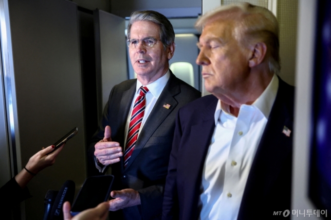 지난 10월27일(현지시간) 말레이시아에서 일본으로 향하는 에어포스원(미 대통령 전용기)에서 도널드 트럼프 미국 대통령과 스콧 베선트 재무장관이 한미 간 관세 후속 협상 진행상황에 대해 밝히고 있다. /로이터=뉴스1 /사진=(로이터=뉴스1) 류정민 특파원 |