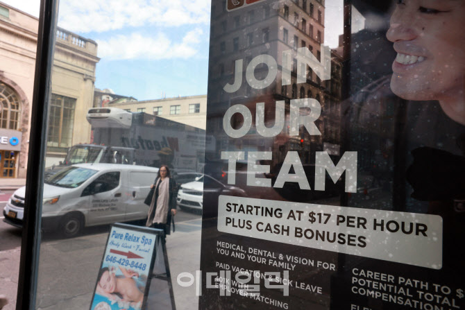지난달 미국 뉴욕 맨해튼의 거리에 게시된 채용공고.(사진=AFP) |