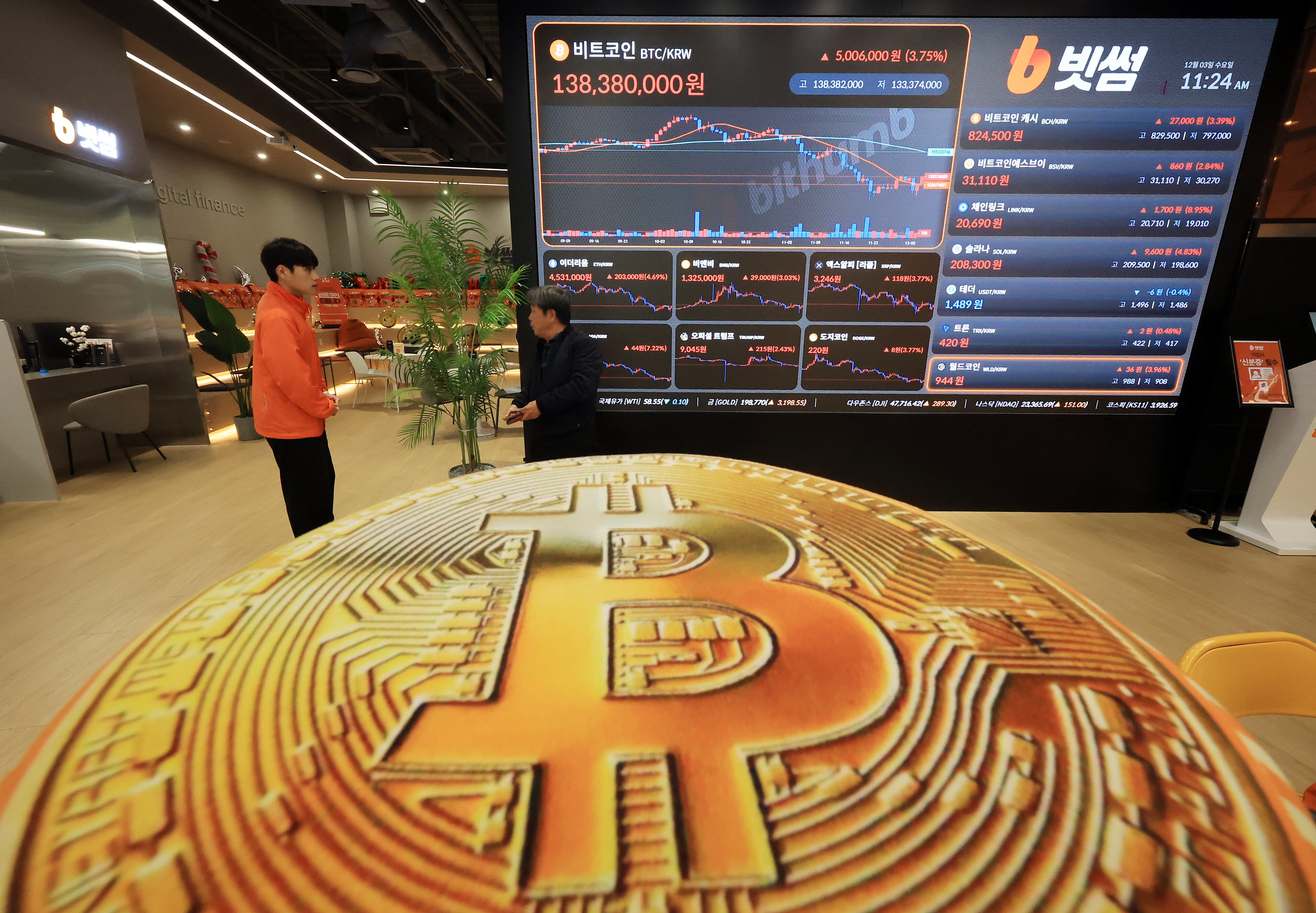 서울 강남구 빗썸 라운지 전광판에 비트코인 시세가 나타나고 있다. /뉴스1 |