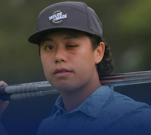 대회 중 공에 맞아 왼쪽 눈을 실명한 뒤 1년 만에 복귀한 호주 골프 선수 제프 관 |