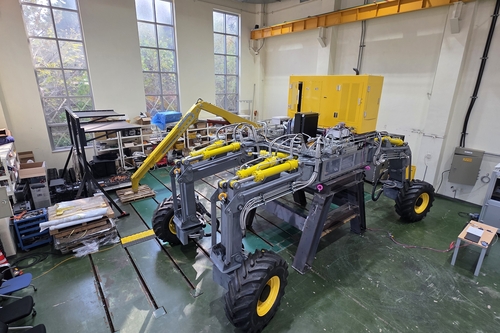 (포항=연합뉴스) 손대성 기자 = 한국로봇융합연구원은 한국생산기술연구원, 한국건설기계부품연구원, 로비텍과 함께 '산악지형 목재 수확 로봇'을 개발했다고 4일 밝혔다.
