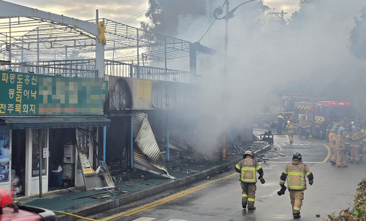 불은 이날 오전 7시54분쯤 한 음식점에서 시작돼 인접 점포로 번졌으나, 인명피해는 없었다.