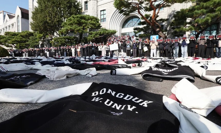 동덕여대에선 지난해 11월부터 남녀공학 전환을 둘러싸고 ‘래커칠 시위’가 일어나는 등 학교와 학생 사이 갈등을 빚고 있다. 이에 동덕여대는 교수·동문·학생·직원 등 구성원 의견을 수렴하는 공학전환공론화위원회(공론화위)를 구성해 공학 전환을 논의해왔다. 지난 2일 공론화위는 ‘남녀공학 전환 권고안’을 발표했고, 전날 오후 학교 쪽은 김명애 총장 명의의 입장문을 내 공론화위 권고안을 수용했다. 공학 전환 시점은 2029년이다. 학생들과 동문들은 학교 쪽의 갑작스러운 공학 전환 결정에 반발하고 있다.