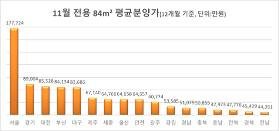 11월 전국 전용면적 84㎡ 평균 분양가. 리얼하우스 |