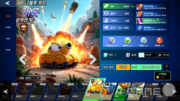스쿼드 시스템은 단순히 숫자만 늘린 것이 아니다. 탱크마다 고유한 특성과 스킬이 있어, 어떤 조합으로 덱을 구성하느냐에 따라 전략이 완전히 달라진다. 20종 이상의 탱크와 캐릭터가 준비되어 있으며, 육성할수록 능력치가 강화되고 성급이 오르면 외형도 변화한다.