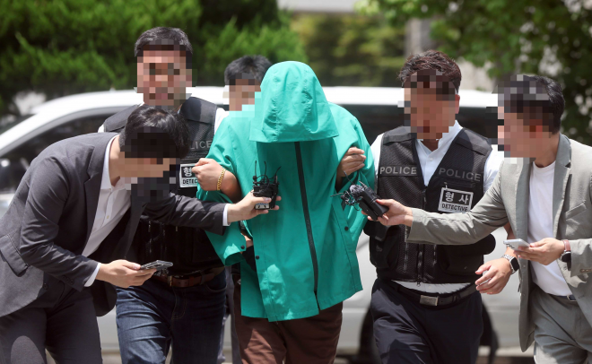 지난 5월 태국 파타야에서 다른 공범 2명과 함께 30대 한국인을 살해한 혐의를 받은 20대가 12일 오후 경남 창원시 성산구 창원지법에 구속 전 피의자 심문(영장실질심사)을 받기 위해 출석하고 있다. 2024.7.12. 연합뉴스 |