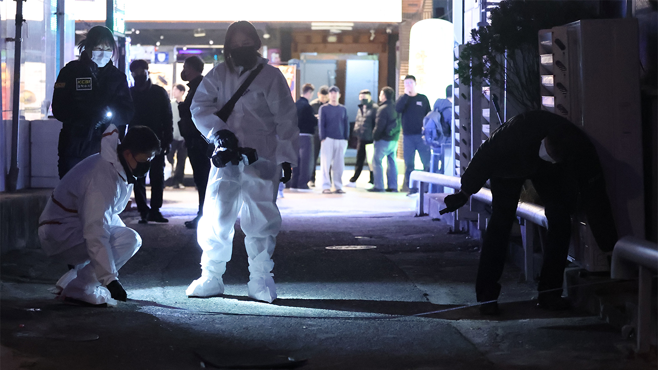 ▲ 3일 오후 경남 창원시 마산회원구 합성동 한 모텔 앞에서 경찰이 현장을 살피고 있다.