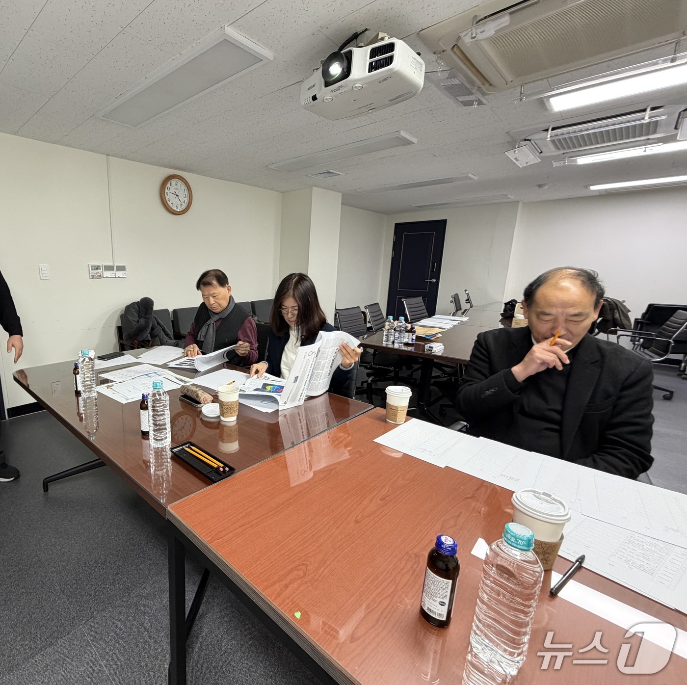 '2025 전북기자상' 심사위원들이 출품작들을 살펴보고 있다. 왼쪽부터 김명성 전 KBS전주방송총국 보도국장, 나미수 전북대 미디어커뮤니케이션학과 교수, 이상덕 전 전라일보 편집국장 순.(전북기자협회 제공. 재판매 및 DB금지)/뉴스1 |
