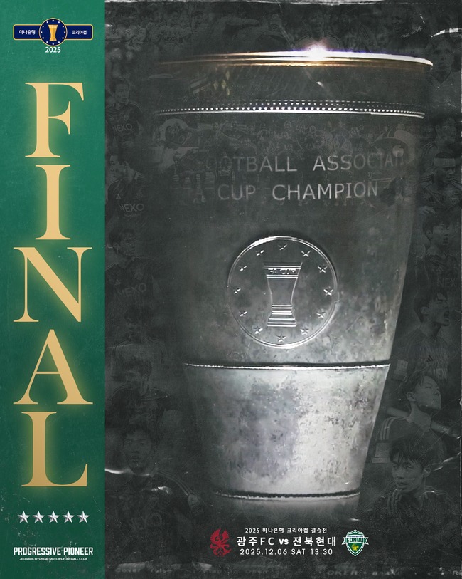 전북현대가 오는 12월 6일(토) 오후 1시 30분 '2025 하나은행 코리아컵' 결승전을 서울월드컵경기장에서 광주FC와 맞붙는다.