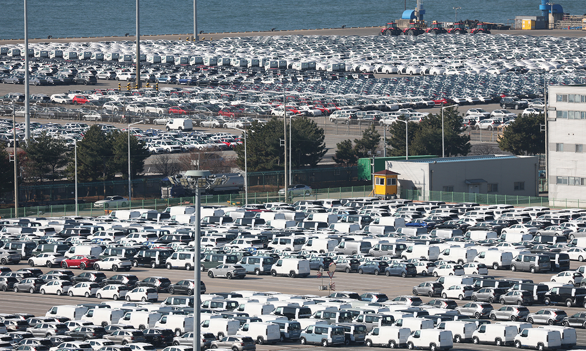 수출용 차량 미국 정부가 한국의 대미(對美) 수출 자동차 관세를 지난달 1일부터 15%로 소급 인하하는 내용을 온라인 관보에 게재한 4일 경기 평택시 포승읍 평택항에 수출용 차량이 세워져 있다.평택=뉴스1 |