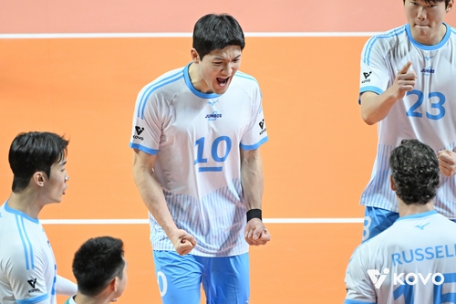 (서울=연합뉴스) 이대호 기자 = 대한항공이 9연승 고공행진을 이어가며 올 시즌 남자 프로배구에서 가장 먼저 10승 고지를 밟았다.